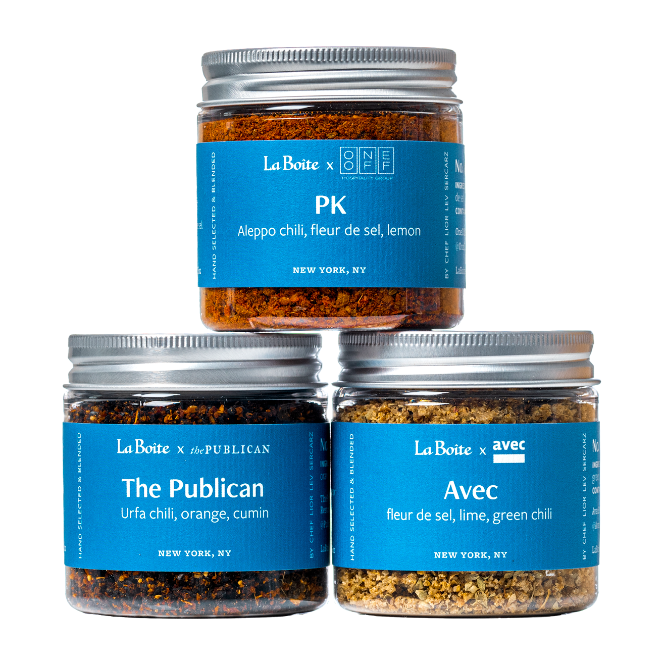 Includes a full-sized jar of each of his 3 blends.