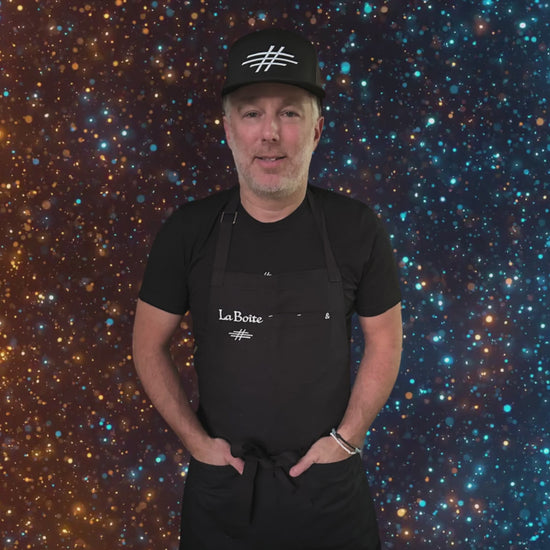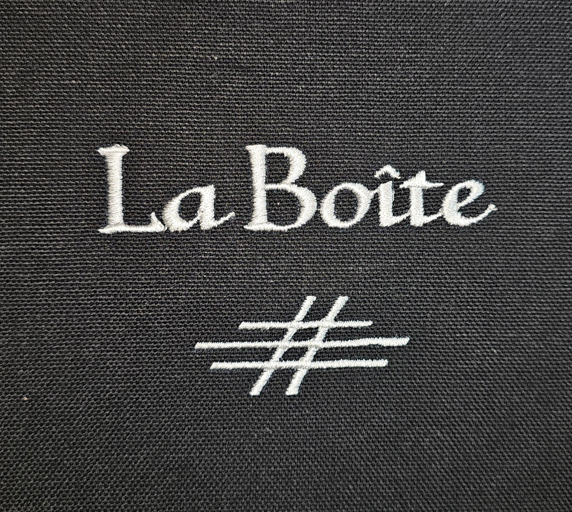 Embroidered with the La Boîte branding and logo, this custom piece should last for a lifetime of delicious memories.